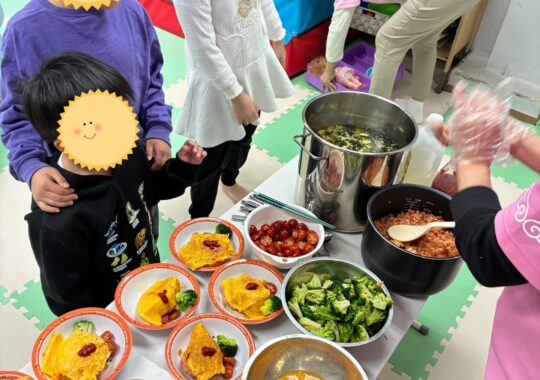 今日はお料理教室でしたオムライス、たまごワカメ春雨スープをたくさん食べてもらえました