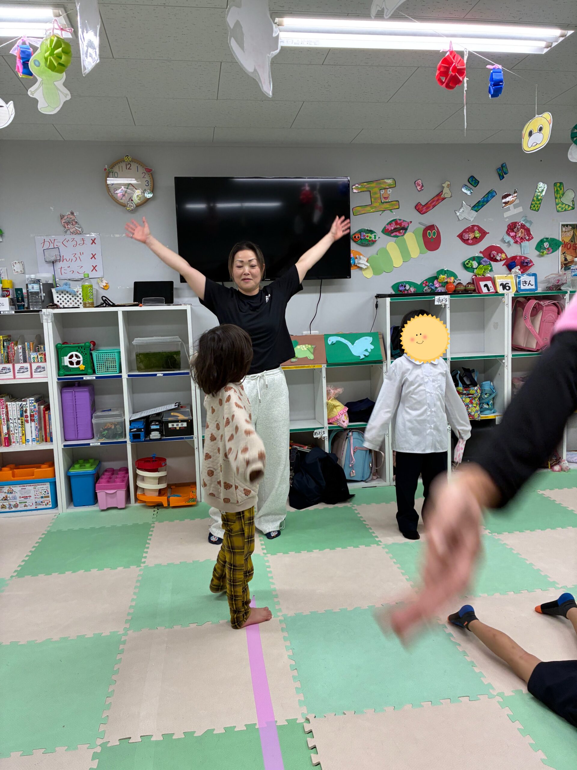 迫力満点の大倉先生のダンスみんなも一生懸命に先生についていきますストレッチ体操、体幹トレーニング身体を大きく動かす練習のあと軽快な曲でダンスみんな、がんばりました